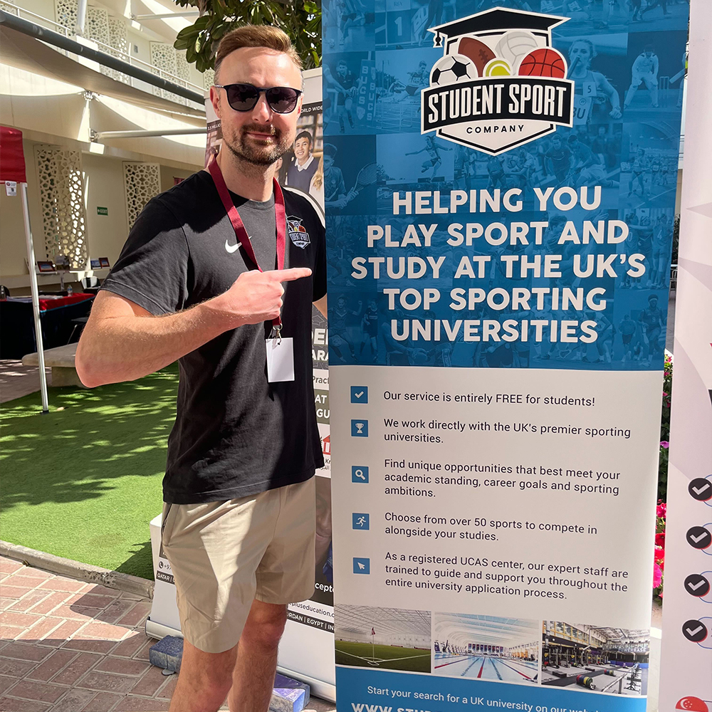 We also had the opportunity to exhibit at a university fair hosted by the American School of Doha. Events like this create space for open discussion and exploration, and it was fantastic to meet families who were discovering the UK university sport pathway for the first time.